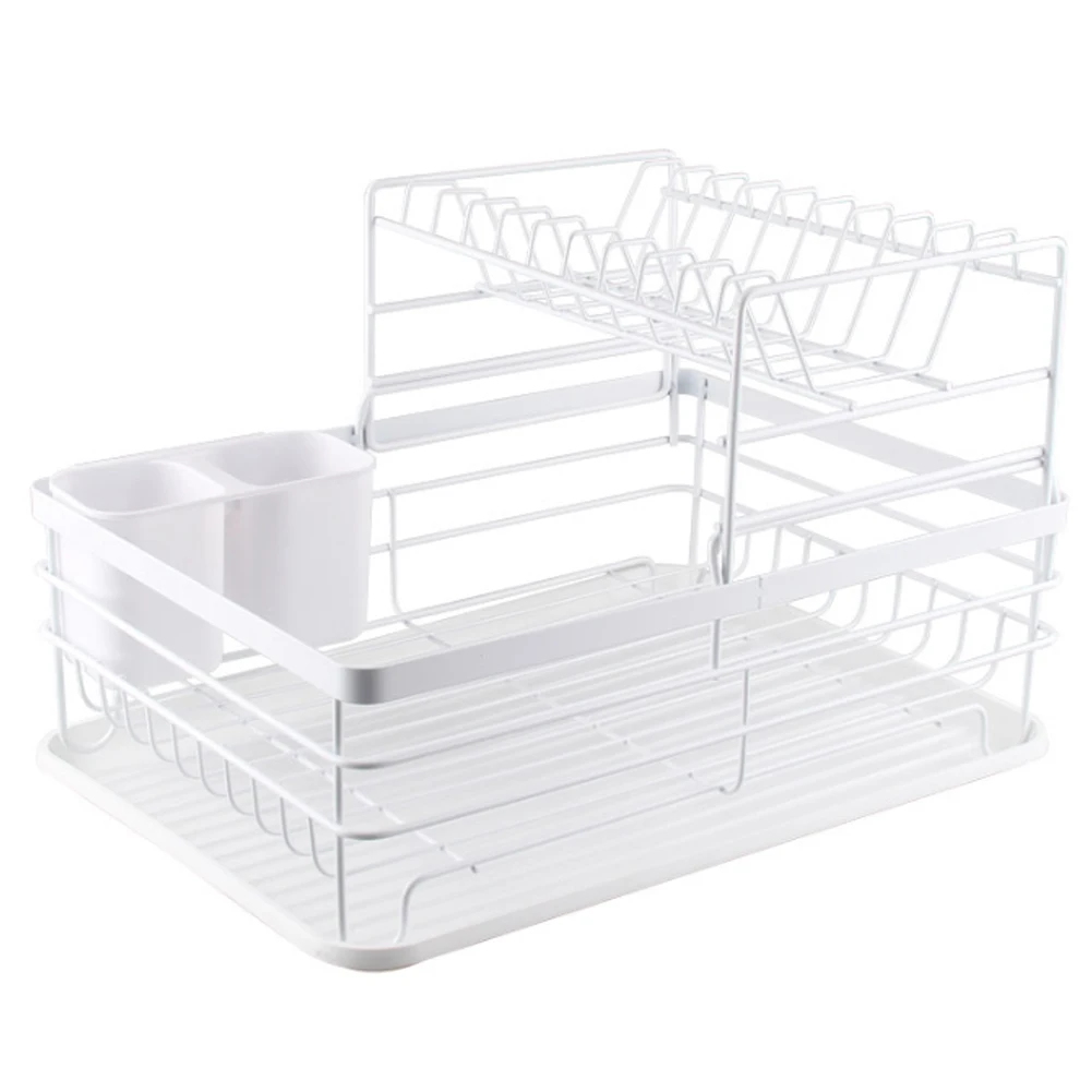 This space-saving dish drainer rack keeps your kitchen organised and running efficiently. Made from high-quality iron with a white-coated finish, it offers a sturdy structure with excellent weight-bearing capacity, making it easy to store all your kitchenware. Its thoughtful design promotes better air circulation and features a removable drip tray to collect excess water, helping to keep your countertops clean and dry. It combines practicality with modern aesthetics, making washing and drying dishes easy and suitable for any kitchen style.