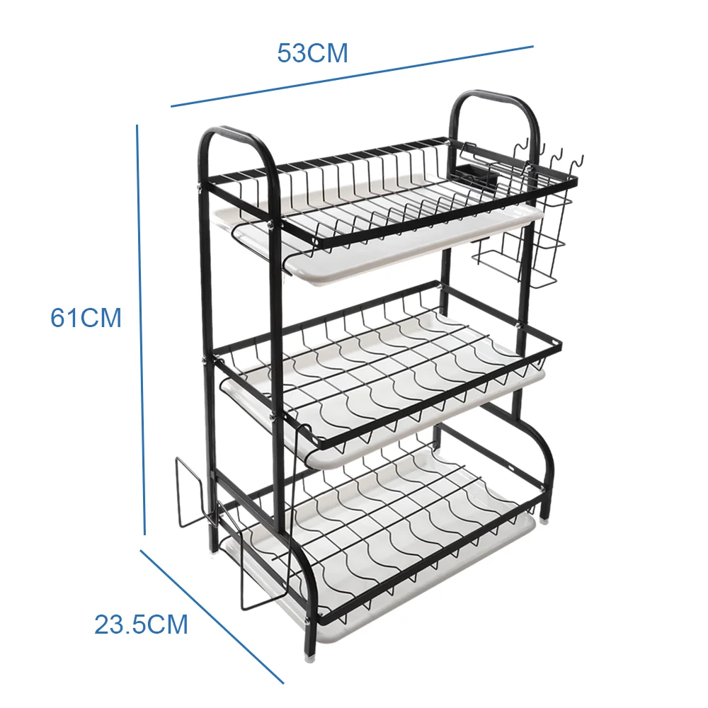 3-tier Dish Drying Drainer Rack, Multifunctional Rustproof Countertop Metal Single Dish Storage Rack, for Kitchen Restaurant