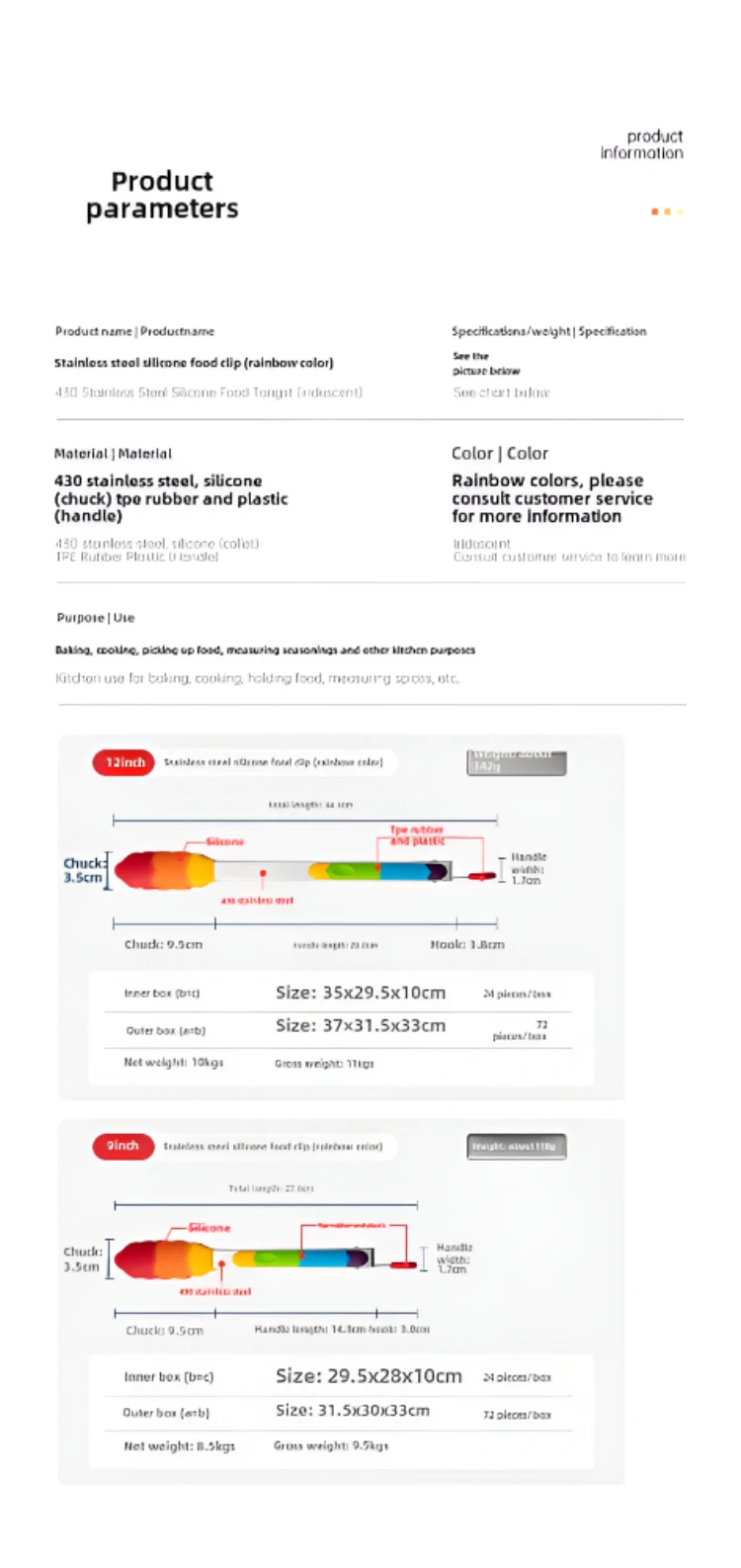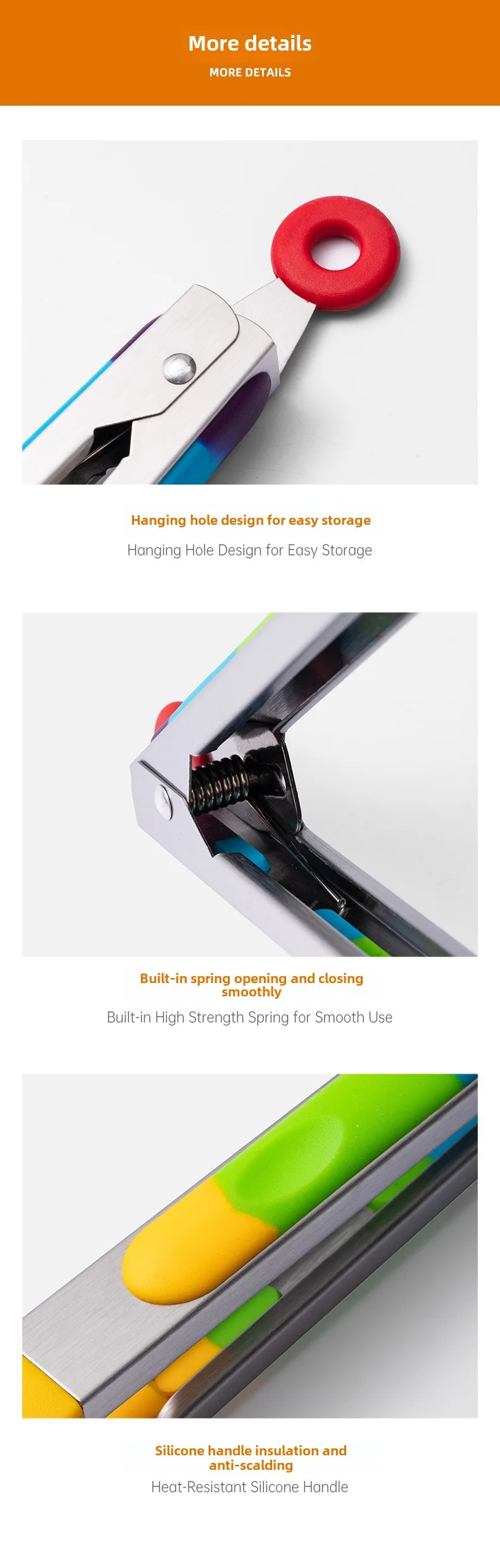 Heat-resistant silicone food tongs kitchen tool stainless steel food tongs anti-scald steak tongs barbecue tongs bread tongs