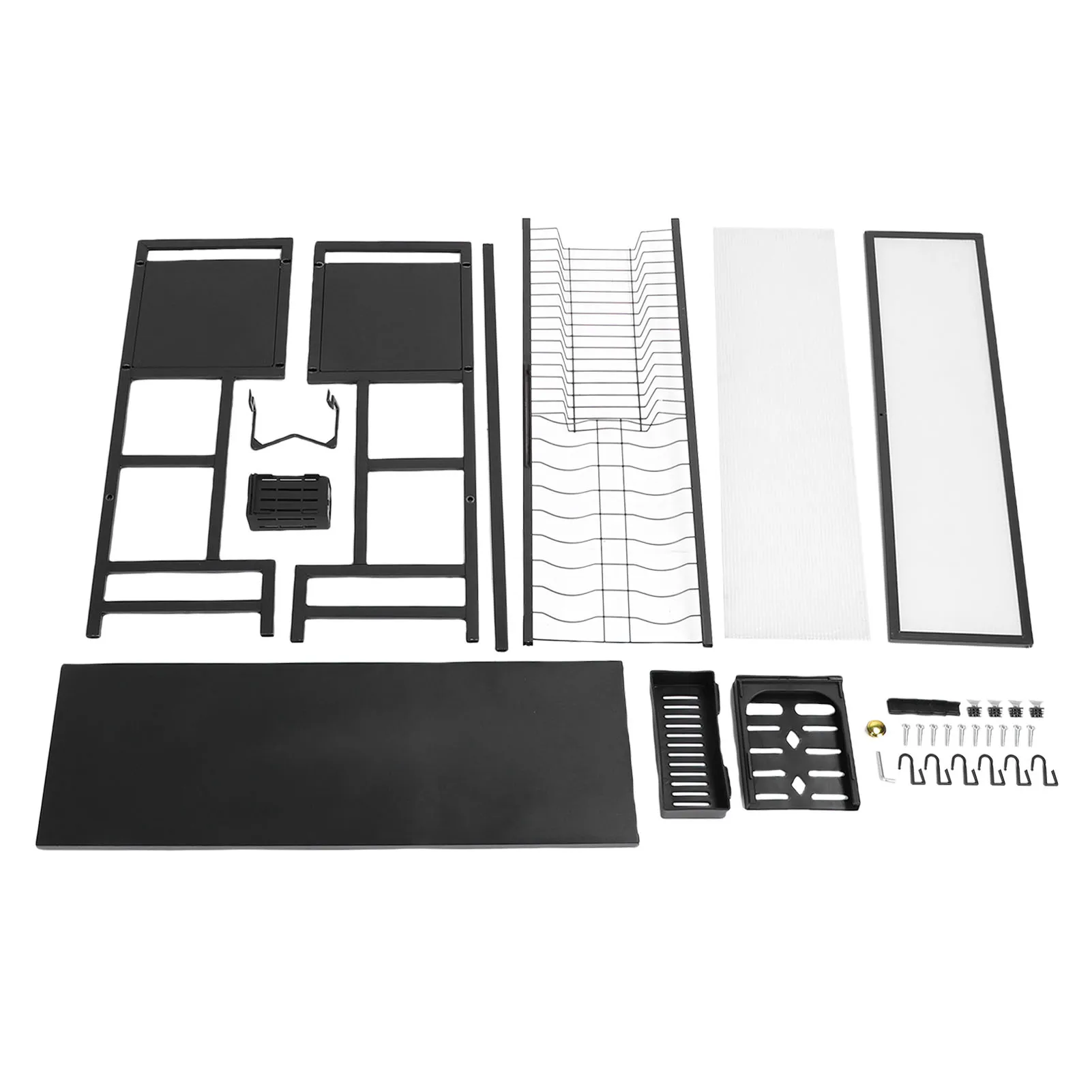 Over The Sink Dish Drying Rack Carbon Steel Space Saving 2 Tier Above Kitchen Sink Dish Drying Drainer Rack with Cover for Kitchen