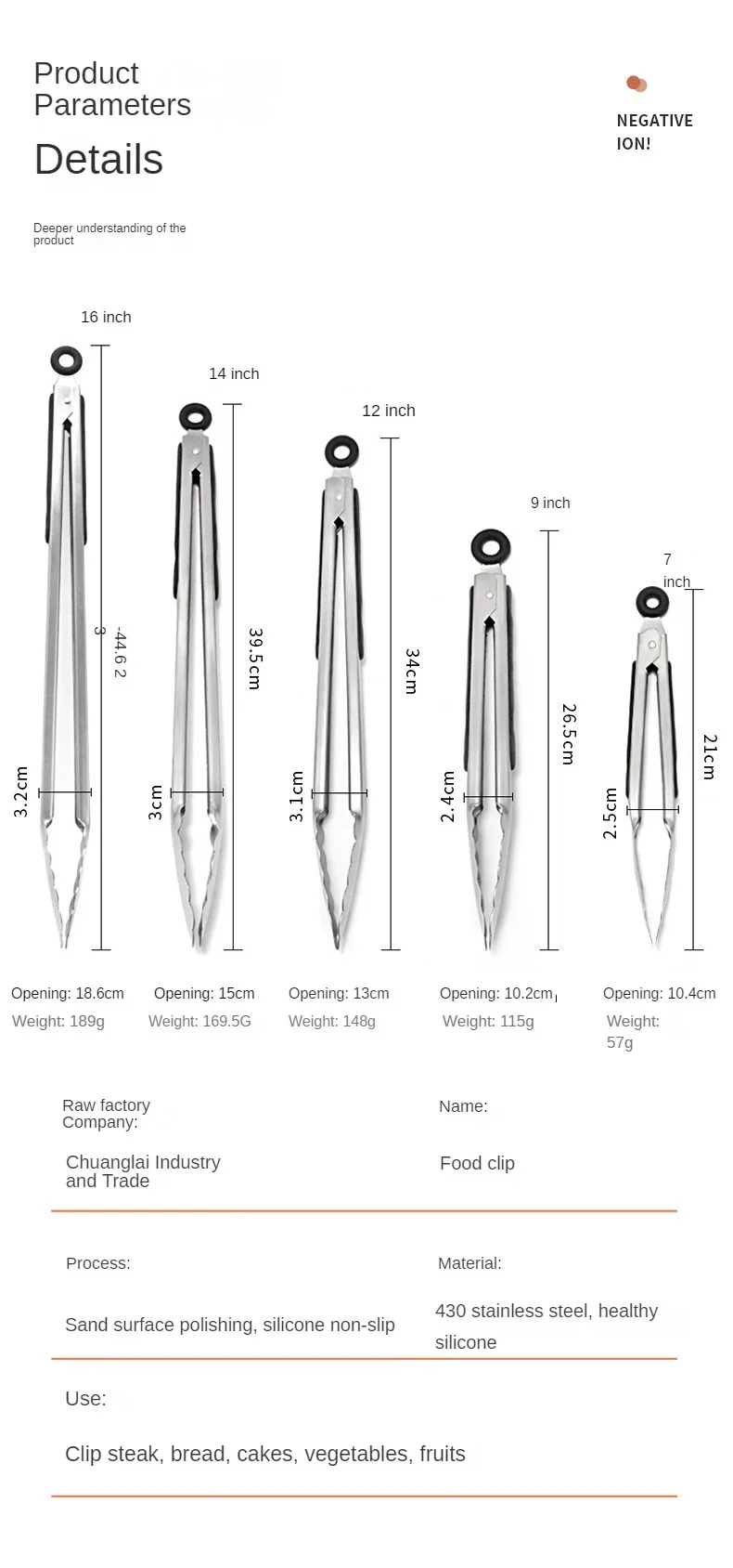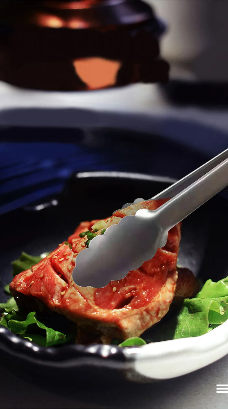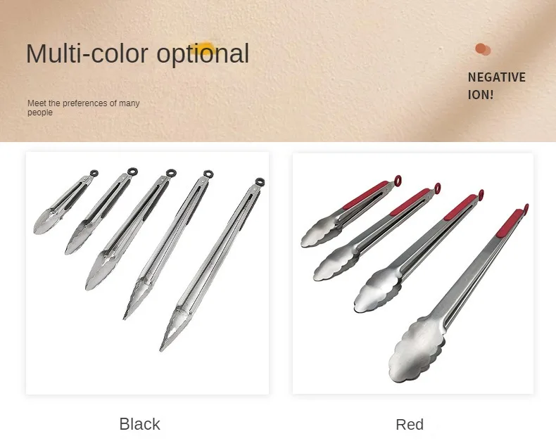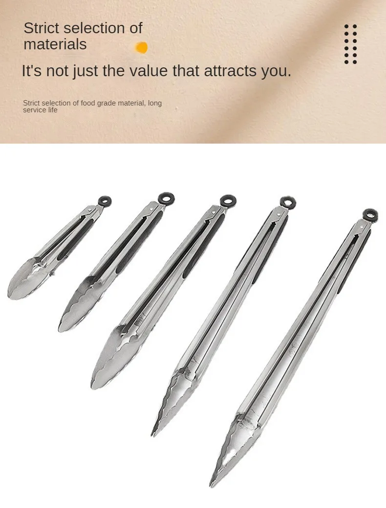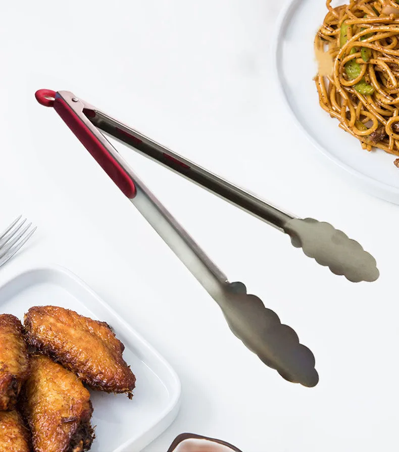 Steel food tongs BBQ grill tools 9 inch 12 inch 14 inch 16 inch factory wholesale stainless steel food tongs